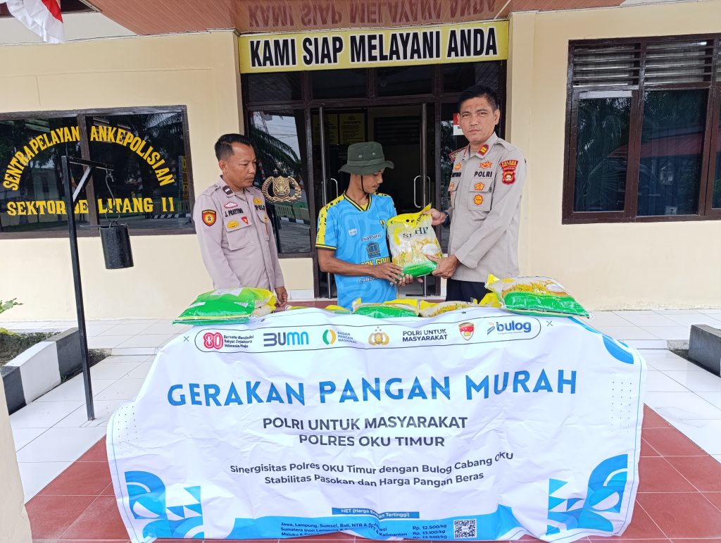OKU Timur Belitang II – Dalam rangka menjaga stabilitas harga pangan dan menekan laju inflasi, Polsek Belitang II Polres OKU Timur bekerja sama dengan Perum Bulog menggelar Gerakan Pangan Murah pada Selasa (2/9/2025) sekitar pukul 09.00 WIB. Kegiatan ini berlangsung di halaman Polsek Belitang II, Desa Sumber Jaya, Kecamatan Belitang II, Kabupaten OKU Timur.