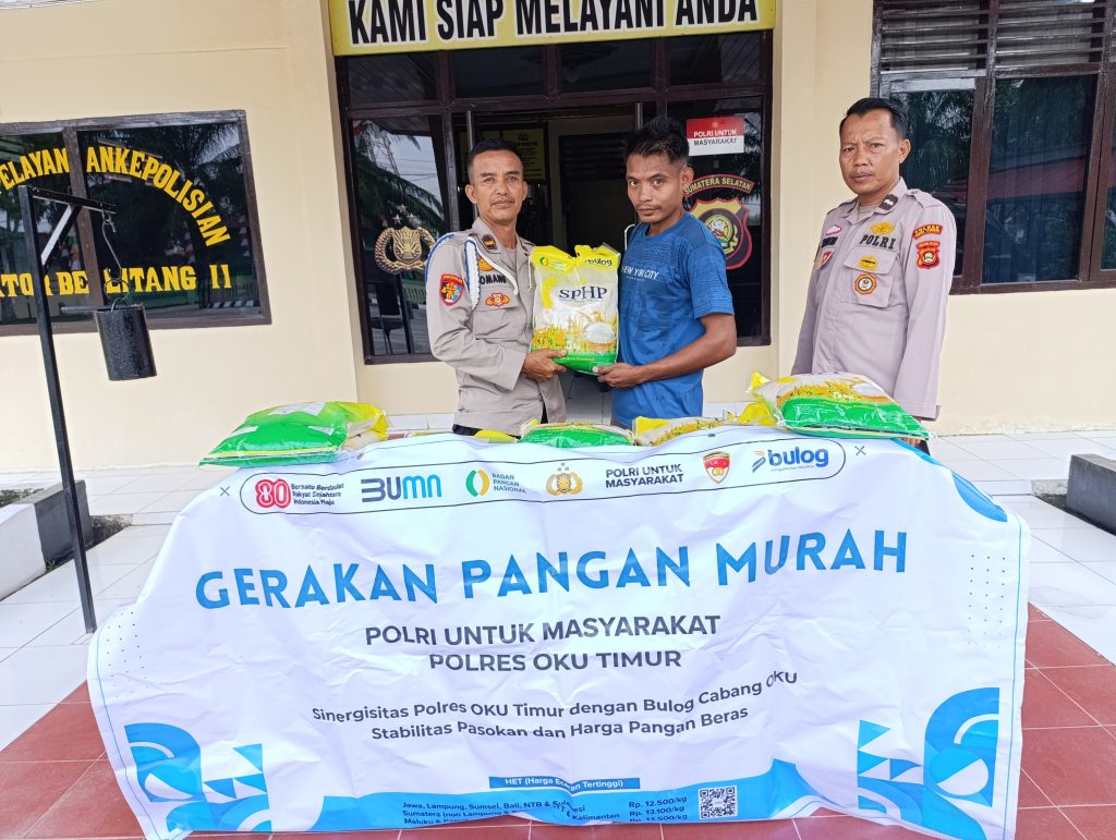 OKU Timur – Dalam upaya menjaga stabilitas harga pangan sekaligus membantu masyarakat memperoleh kebutuhan pokok dengan harga terjangkau, Polsek Belitang II Polres OKU Timur bersama Perum Bulog melaksanakan kegiatan Gerakan Pangan Murah pada Selasa (9/9/2025).