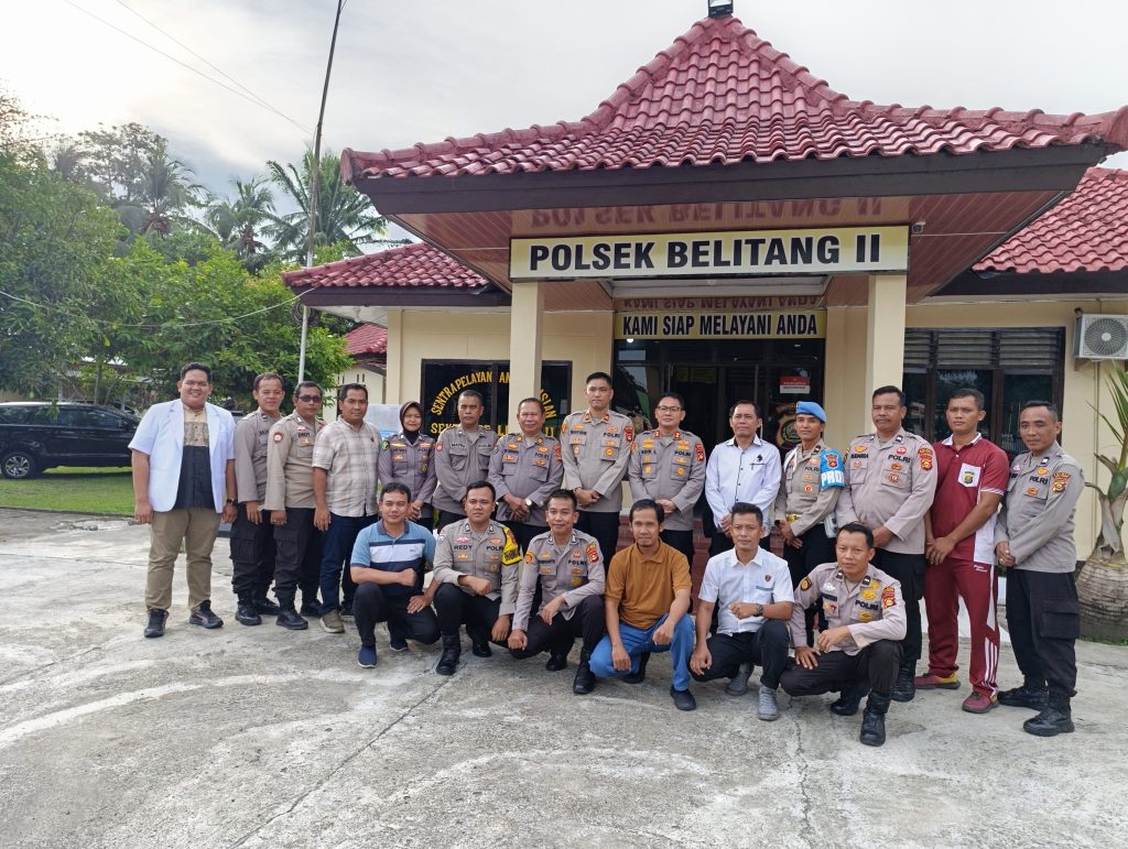 Kehadiran rombongan disambut langsung Kapolsek Belitang II IPTU Wahyudin, SH., M.Si bersama para Kanit, personil Polsek, dan PHL Polsek Belitang II.