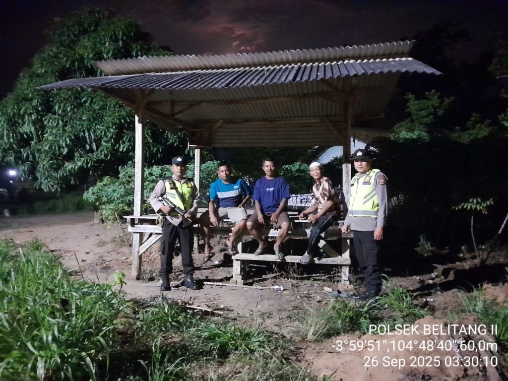OKU Timur – Dalam rangka menjaga keamanan dan ketertiban masyarakat (Kamtibmas), Polsek Belitang II melaksanakan kegiatan pengecekan pos ronda jaga malam di wilayah hukumnya. Kegiatan ini dilaksanakan pada Kamis (26/9/2025) mulai pukul 23.00 WIB hingga 02.00 WIB, bertempat di Desa Sumber jaya, Kecamatan Belitang II, Kabupaten OKU Timur.