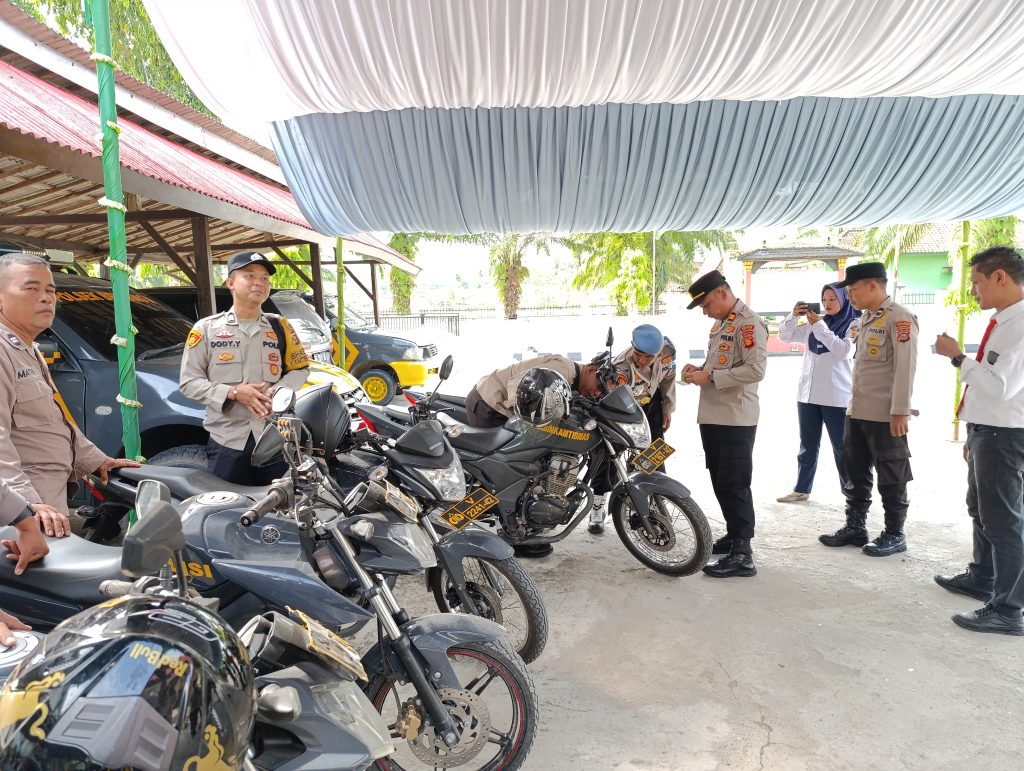 Adapun barang inventaris yang dicek meliputi mobil patroli, sepeda motor dinas, senjata api, rompi, Handy Talky (HT), toa, borgol, jas hujan, serta perlengkapan inventaris lainnya.