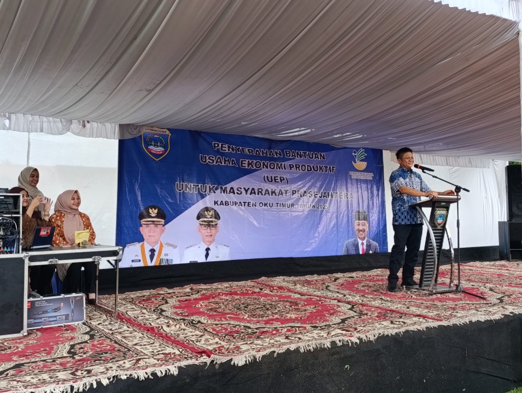 OKU Timur – Pemerintah Kabupaten OKU Timur melalui Dinas Sosial kembali menyalurkan Bantuan Usaha Ekonomi Produktif (UEP) bagi masyarakat pra sejahtera tahun 2025. Kegiatan penyerahan bantuan tersebut berlangsung di Lapangan Sepakbola Desa Sido Waluyo, Kecamatan Belitang Mulya, Kabupaten OKU Timur, pada Selasa (7 Oktober 2025) sekitar pukul 12.00 WIB.