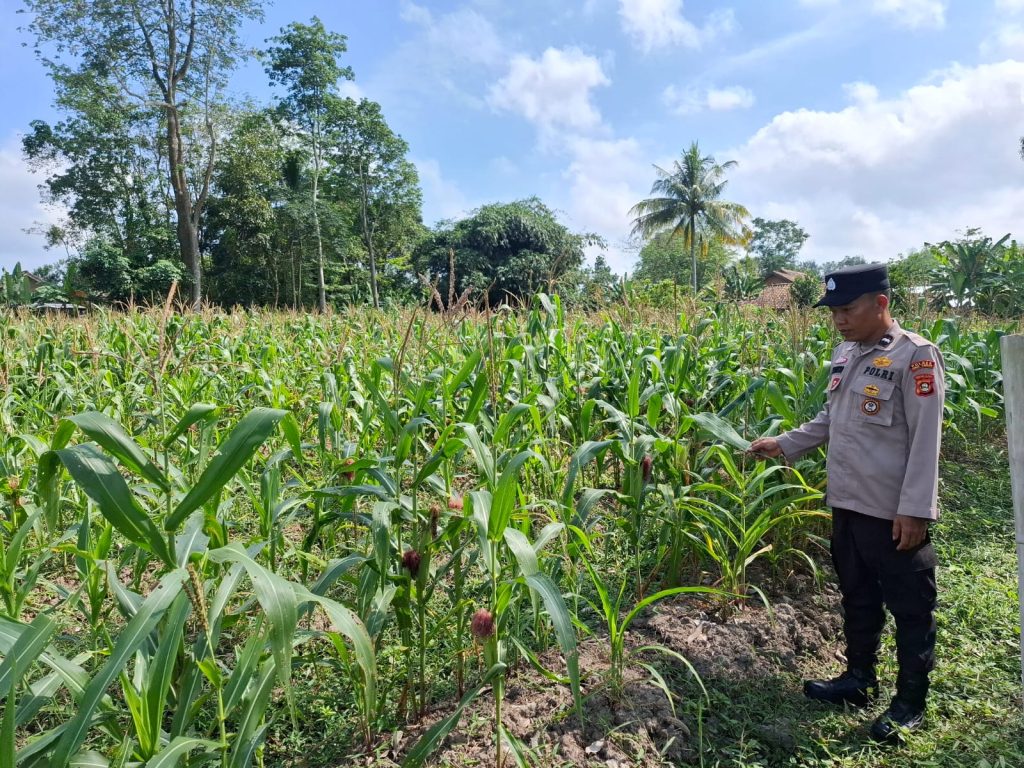 Dalam kesempatan tersebut, Aipda Joko Prayitno meninjau langsung kondisi tanaman serta memberikan dorongan dan motivasi kepada pemilik lahan agar terus bersemangat dalam mendukung program ketahanan pangan yang digalakkan pemerintah.