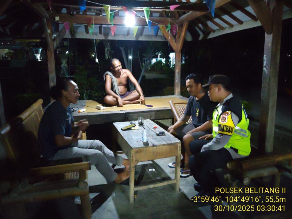 OKU Timur – Dalam rangka menjaga situasi keamanan dan ketertiban masyarakat (kamtibmas) di wilayah binaannya, Bhabinkamtibmas Desa Darma Buana Polsek Belitang II Brigadir Azis Widodo, SE melaksanakan kegiatan cek dan kontrol siskamling di pos ronda jaga malam, Kamis (30/10/2025) pukul 03.00 WIB.
