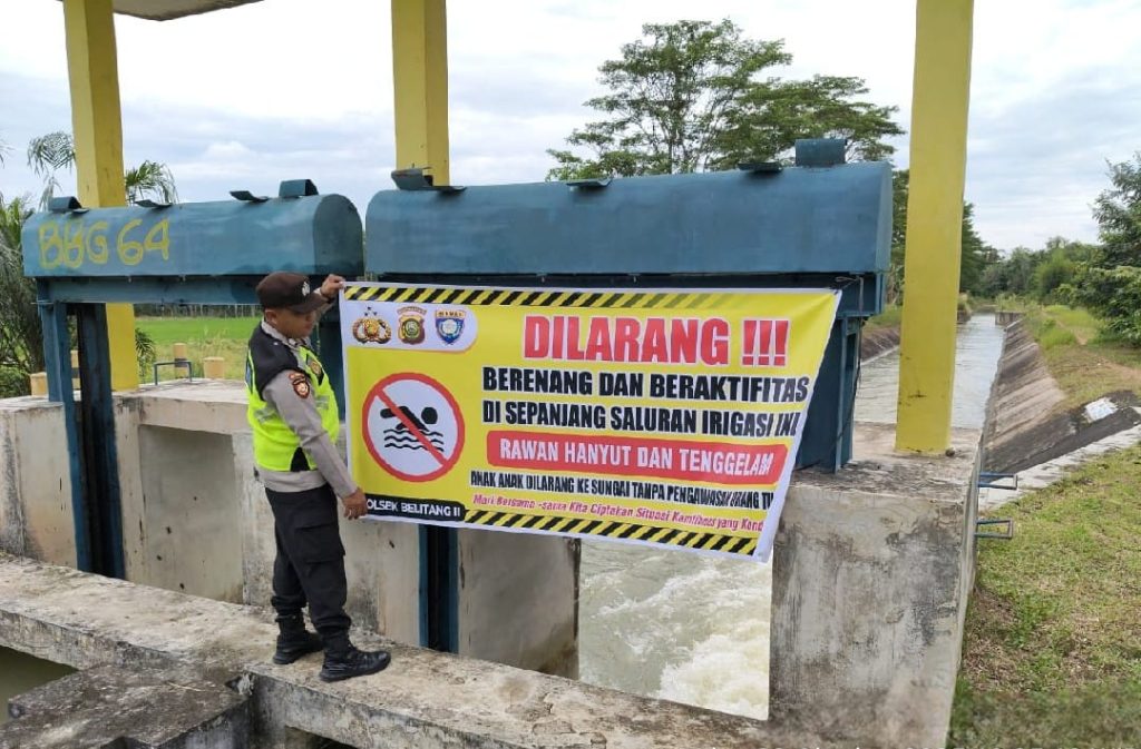 Kegiatan tersebut dilaksanakan oleh Bhabinkamtibmas Polsek Belitang II, Brigadir Azis Widodo, S.E., dengan menyasar beberapa titik strategis di area tanggul irigasi yang sering dijadikan tempat bermain atau mandi oleh warga, khususnya anak-anak.