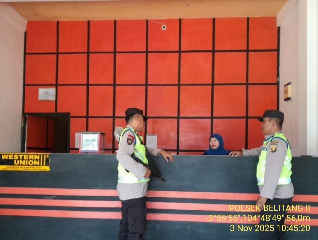 OKU Timur – Dalam rangka menjaga keamanan dan ketertiban masyarakat, personel Polsek Belitang II Polres OKU Timur melaksanakan patroli pada objek vital yang berada di wilayah hukumnya. Kegiatan tersebut dilaksanakan pada Senin (3/11/2025) di Kantor Pos Desa Sumber Jaya, Kecamatan Belitang II.