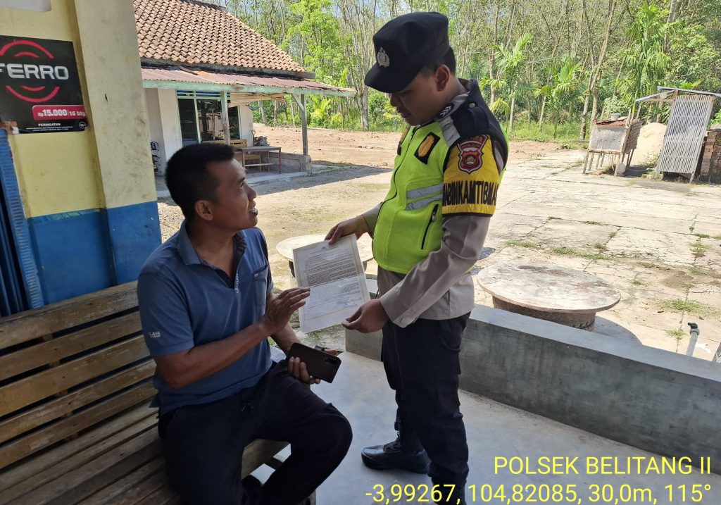 Belitang II – Dalam rangka mencegah terjadinya kebakaran hutan dan lahan (karhutla) di wilayah hukum Polsek Belitang II, Bhabinkamtibmas Desa Sumber Sari, Brigadir Redy Eko Irawan, S.E., melaksanakan kegiatan penyebaran maklumat Kapolda Sumatera Selatan tentang larangan pembakaran hutan dan lahan, pada Rabu, 5 November 2025.