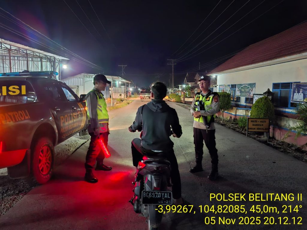 Belitang II – Guna menciptakan situasi keamanan dan ketertiban masyarakat (Kamtibmas) yang aman serta mencegah potensi tindak kriminalitas, personel Polsek Belitang II melaksanakan patroli malam antisipasi 3C (Curat, Curas, dan Curanmor) pada Rabu, 5 November 2025 sekitar pukul 20.00 WIB.