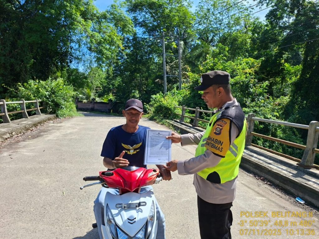 OKU TIMUR – Dalam upaya mencegah terjadinya kebakaran hutan dan lahan (karhutla), Bhabinkamtibmas Desa Tegal Besar, Kecamatan Belitang II, Kabupaten OKU Timur, Aipda Putu Superdianto melaksanakan kegiatan penyebaran Maklumat Kapolda Sumsel tentang larangan melakukan pembakaran hutan dan lahan, Jumat (7/11/2025).