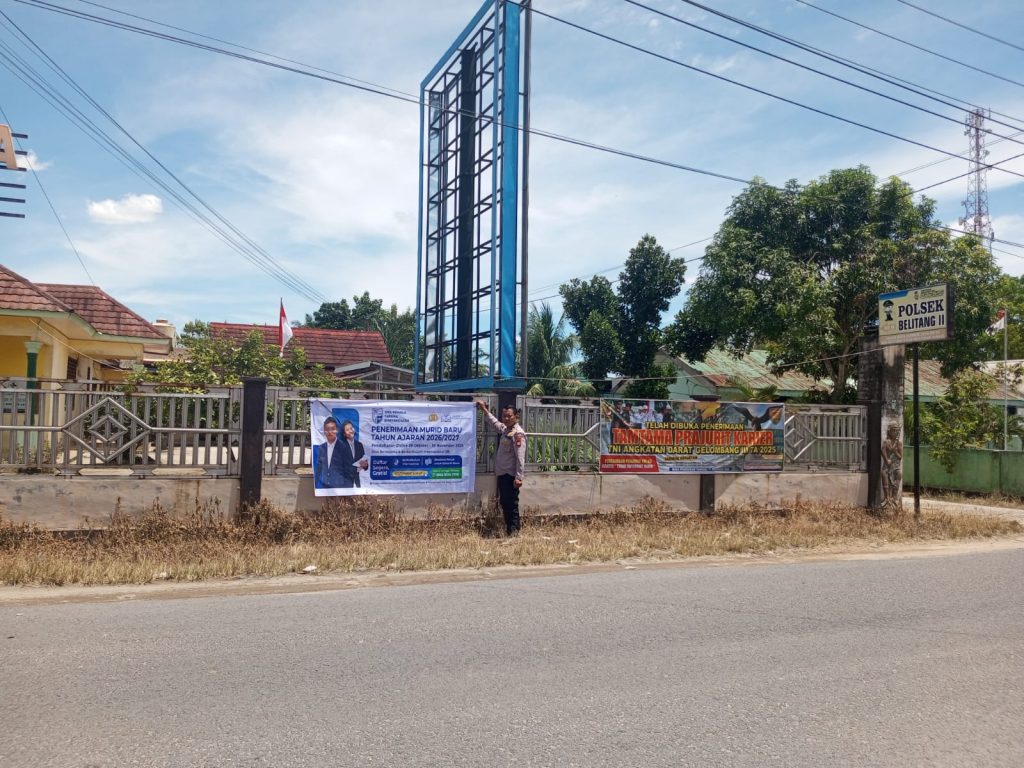 OKU TIMUR – Dalam rangka mendukung kegiatan pendidikan dan memperkenalkan lembaga sekolah binaan Bhayangkari kepada masyarakat, Polsek Belitang II Polres OKU Timur melaksanakan kegiatan pemasangan spanduk Penerimaan Peserta Didik Baru (PPDB) SMA Kemala Taruna Bhayangkara untuk tahun ajaran 2026/2027, pada Sabtu (8/11/2026).