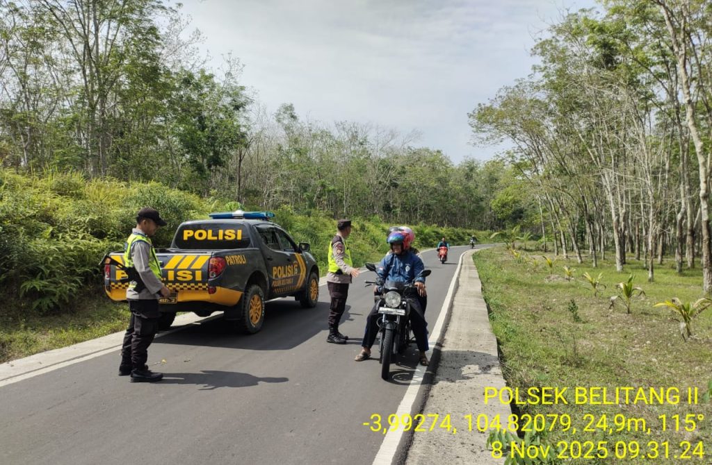 OKU TIMUR – Dalam rangka menjaga situasi keamanan dan ketertiban masyarakat (kamtibmas) agar tetap kondusif, Polsek Belitang II Polres OKU Timur melaksanakan patroli siang antisipasi 3C (Curat, Curas, dan Curanmor) pada Sabtu (8/11/2025) pukul 09.30 WIB di jalan Desa Suka Jaya, Kecamatan Belitang II, Kabupaten OKU Timur.
