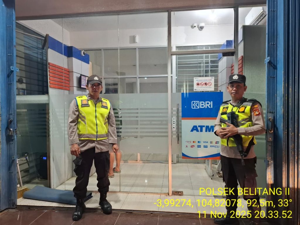 OKU TIMUR – Guna menjaga keamanan dan ketertiban di wilayah hukumnya, personel Polsek Belitang II Polres OKU Timur melaksanakan kegiatan patroli objek vital di Bank BRI Unit Sumber Jaya, Desa Sumber Jaya, Kecamatan Belitang II, pada Selasa (11/11/2025).