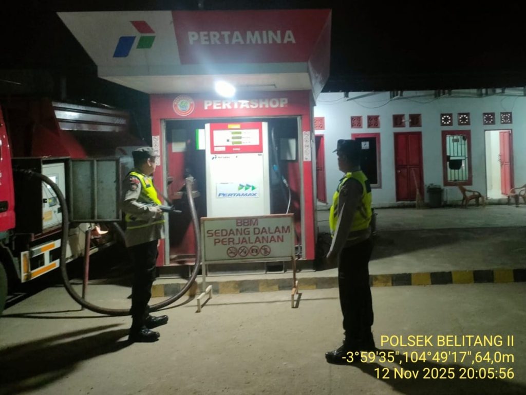 OKU Timur, 12 November 2025 – Untuk menjaga situasi keamanan dan ketertiban masyarakat (kamtibmas) di wilayah hukum Polsek Belitang II, Kanit Samapta Aiptu Tandian bersama personel piket melaksanakan kegiatan patroli objek vital di Pertashop Desa Sumber Jaya, Kecamatan Belitang II, pada Rabu (12/11/2025).