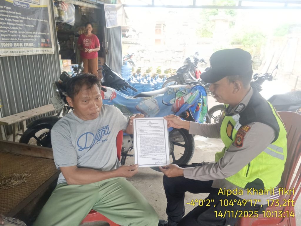 Belitang II – Upaya pencegahan kebakaran hutan dan lahan (karhutla) terus digencarkan jajaran kepolisian. Pada Jumat, 14 November 2025, Bhabinkamtibmas Polsek Belitang II Bripka Hardianto melaksanakan kegiatan penyebaran Maklumat Kapolda Sumsel tentang larangan karhutla di Desa Darma Buana, Kecamatan Belitang II.