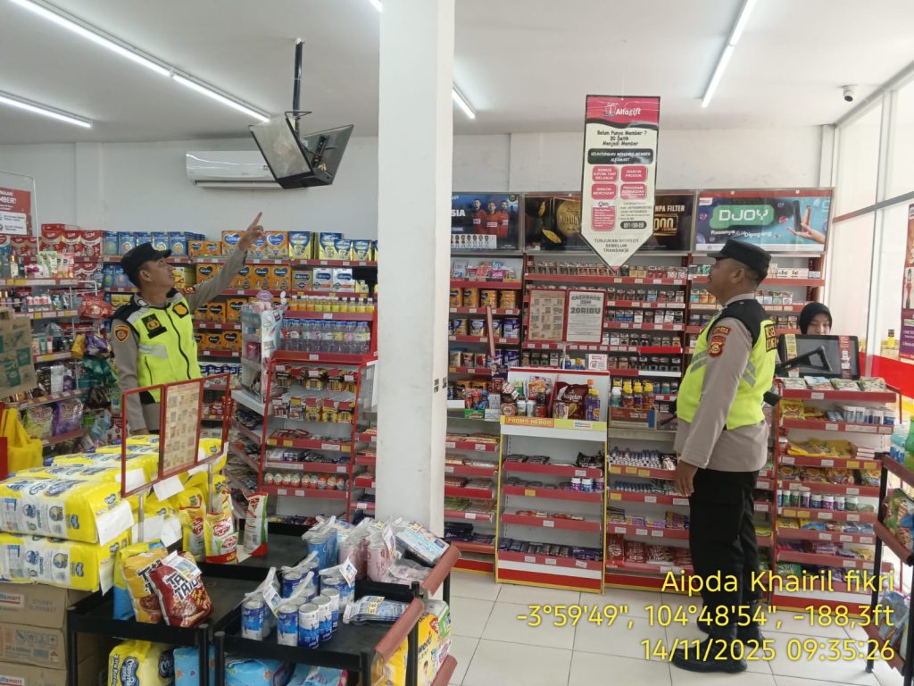 Sumber Jaya – Upaya menjaga keamanan dan ketertiban masyarakat terus dilakukan Polsek setempat. Pada Jumat, 14 November 2025, Ka SPK 2 Aiptu Made Sudarsa bersama personel piket melaksanakan kegiatan pengecekan CCTV dan patroli dialogis di salah satu gerai Alfamart yang berada di Desa Sumber Jaya.