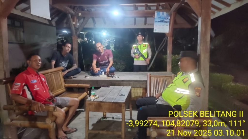 Belitang II – Dalam upaya memperkuat keamanan wilayah pada malam hari, Bhabinkamtibmas Polsek Belitang II Aipda Khairil Fikri bersama personel piket melaksanakan kegiatan cek dan kontrol siskamling/pos ronda pada Jumat (21/11/2025) sekitar pukul 03.00 WIB di Desa Darma Buana, Kecamatan Belitang II.