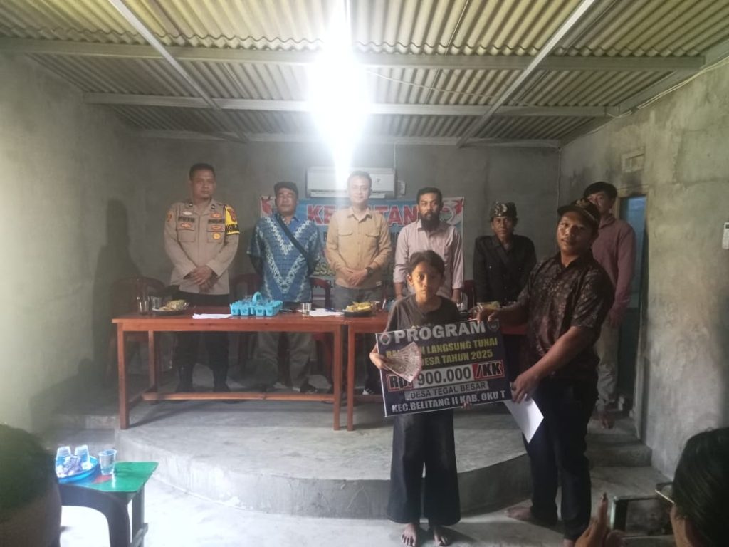 OKU Timur – Pemerintah Desa Tegal Besar, Kecamatan Belitang II, Kabupaten OKU Timur, kembali menyalurkan Bantuan Langsung Tunai (BLT) Dana Desa (APBN) Tahap IV untuk realisasi bulan Oktober, November, dan Desember Tahun 2025. Kegiatan berlangsung pada Jumat, 21 November 2025, sekitar pukul 10.00 WIB, bertempat di Balai Desa Tegal Besar.