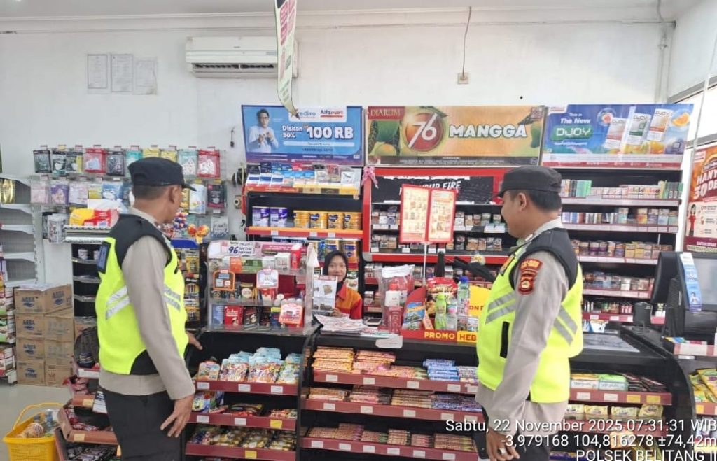 Belitang II — Untuk meningkatkan keamanan dan kenyamanan masyarakat, Polsek Belitang II melaksanakan kegiatan patroli dialogis dan pengecekan CCTV pada Sabtu, 22 November 2025, bertempat di Alfa Mart Desa Sumber Jaya, Kecamatan Belitang II.