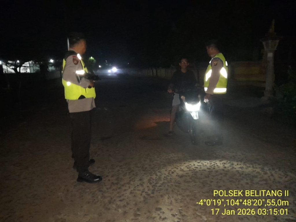 BELITANG II – Jajaran Polsek Belitang II terus berkomitmen menjaga stabilitas keamanan dan ketertiban masyarakat (Kamtibmas) di jam-jam krusial melalui Patroli Kegiatan Rutin Yang Ditingkatkan (KRYD). Pada Sabtu dini hari (17/01/2026), kegiatan difokuskan di Desa Tegal Besar, Kecamatan Belitang II, dipimpin langsung oleh KA SPK III Aiptu I Made Sumatra bersama personel piket fungsi mulai pukul 03.00 WIB.