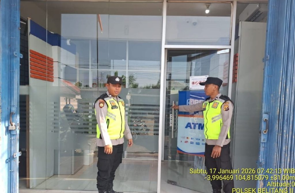 OKU TIMUR – Mengantisipasi terjadinya gangguan kamtibmas dan tindak kriminalitas di area perbankan, jajaran Polsek Belitang II melaksanakan patroli objek vital pada jam sibuk siang hari. Kegiatan ini dipimpin langsung oleh KA SPK I AIPDA Aan Afprianto bersama personel piket fungsi dengan menyasar gerai ATM Bank BRI yang berlokasi di Desa Sumber Jaya, Kecamatan Belitang II, pada Sabtu siang (17/01/2026) sekitar pukul 11.00 WIB.