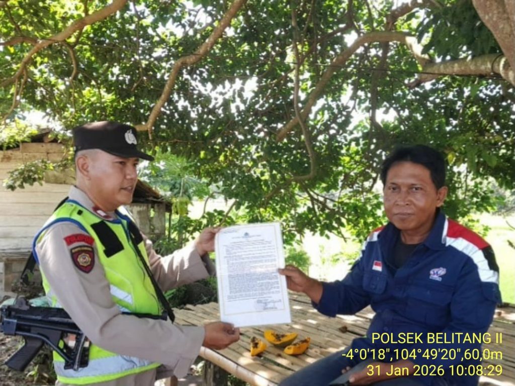 BELITANG II – Menghadapi perubahan cuaca dan sebagai langkah antisipasi terhadap bencana kabut asap, Polsek Belitang II secara masif melakukan langkah pencegahan Kebakaran Hutan dan Lahan (Karhutla). Pada Sabtu pagi, 31 Januari 2026, pukul 09.50 WIB, jajaran Polsek Belitang II melaksanakan giat penyebaran Maklumat Kapolda Sumsel mengenai larangan membakar hutan dan lahan di Desa Srijaya, Kecamatan Belitang II.