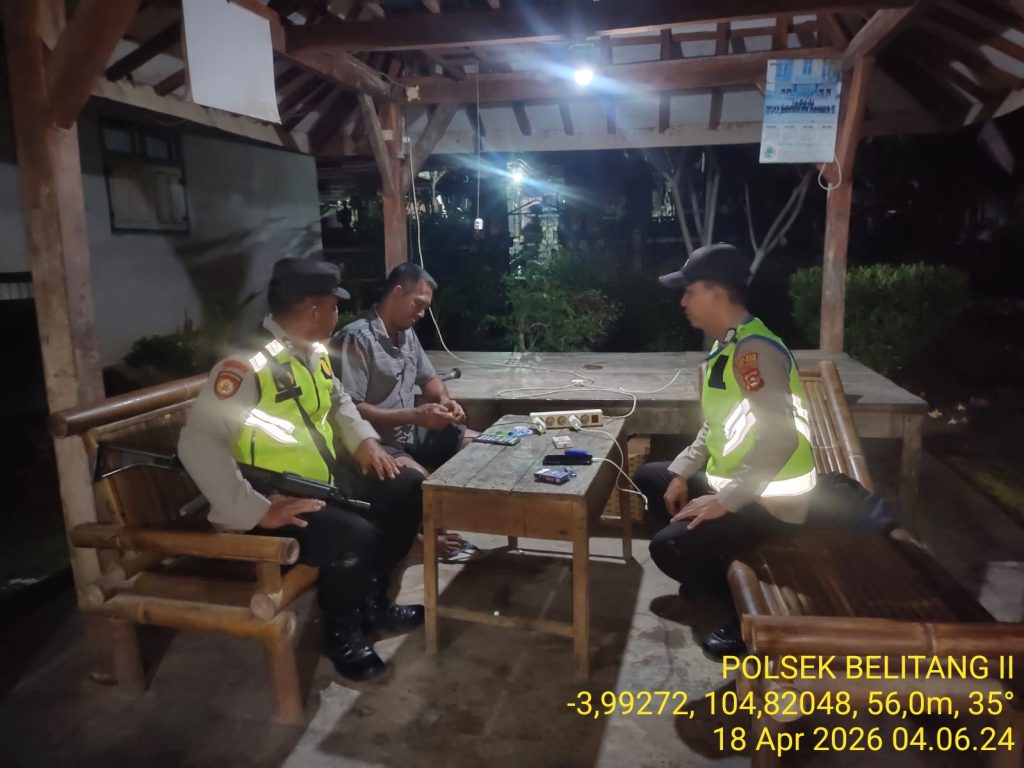 OKU TIMUR – Dalam rangka mengoptimalkan peran serta masyarakat dalam menjaga keamanan lingkungan, jajaran Polsek Belitang II kembali melaksanakan giat patroli pengecekan Pos Keamanan Lingkungan (Poskamling). Pada Sabtu malam (18/04/2026), personel kepolisian menyambangi pos-pos ronda yang aktif di Desa Sumber Rejo, Kecamatan Belitang II, Kabupaten OKU Timur.