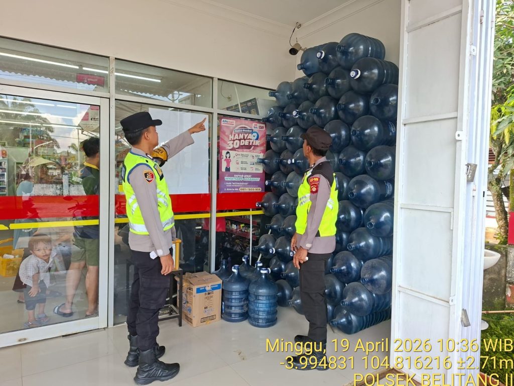 OKU TIMUR – Guna mengantisipasi terjadinya tindak kriminalitas di pusat perbelanjaan dan ritel modern, jajaran Polsek Belitang II terus meningkatkan pengawasan terhadap objek vital di wilayah hukumnya. Pada Minggu pagi (19/04/2026), personel Polsek Belitang II melaksanakan patroli dialogis dan pengecekan sarana keamanan di Alfamart Desa Darma Buana, Kecamatan Belitang II, Kabupaten OKU Timur.