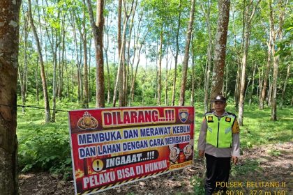 OKU TIMUR – Sebagai langkah antisipasi dan pencegahan terhadap potensi terjadinya kebakaran hutan dan lahan (karhutla), Bhabinkamtibmas Desa Suka Jaya, Kecamatan Belitang II, Kabupaten OKU Timur, Brig...