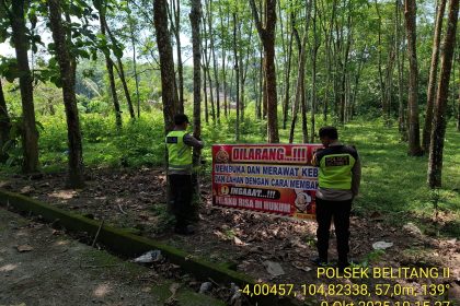 OKU Timur – Sebagai langkah preventif dalam mencegah terjadinya kebakaran hutan dan lahan (karhutla), Polsek Belitang II Polres OKU Timur melaksanakan kegiatan pemasangan banner himbauan larangan karh...
